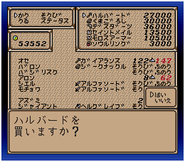 武器と防具がいっしょに売っています。ステータスを見たり装備することができます。