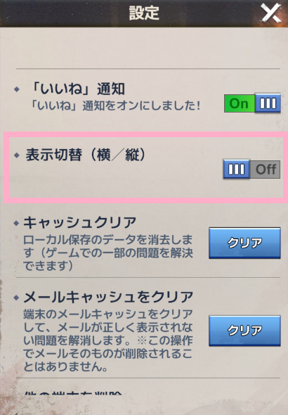 設定画面に入り表示切替のスライドバーを右にスライドし「ON」にします