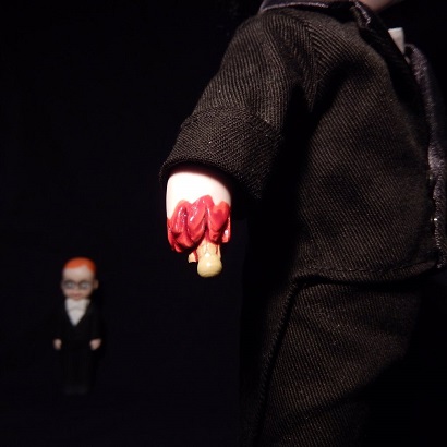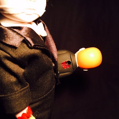 腹話術人形を外したところ。骨が見えています。