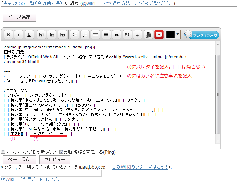 またキャラ個別ページにリンクを作成するときはそのキャラが主人公のものを作成してください