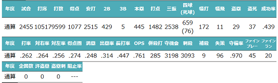 スカイオーシャンズ一筋の外野手。抜群のパワーと優れた精神力を持ち合わせた長距離砲としてスカイオーシャンズで活躍。225年度のMVPを始め合計16個のタイトルを獲得した。通算でも1077得点2515安打445HR1482打点を記録した。
