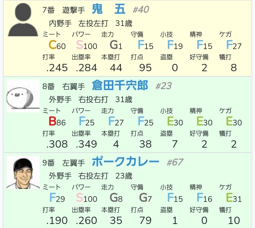 チーム平均ミート66、パワー62の通り、打線に6人もパワーC以上が存在する圧倒的暴力であったが、これで優勝しないんだから野球は不思議である。 ![]() ![]() |