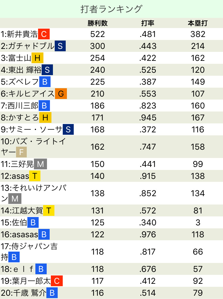 シートバッティングランキング(α版)