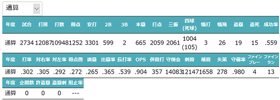 初年度から屈指の長距離砲としてBBLに君臨。歴代1位となる通算665HRや2059打点だけでなく20年連続2桁HRなどアンタッチャブルレコードを生み出した大打者。