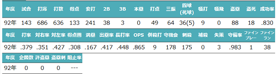 兵庫チーターズ(75-83)愛知ドルフィンズ(84-94) | 48 | 外野手 | 右投左打 | 振り子 | 75年度~94年度 | 2チームを渡り歩いた外野手。優れたミート力と走力を武器に安打と盗塁を量産。多数のタイトルは勿論の事、92年度にはシーズン最多盗塁(88)を記録し翌年の93年度にはシーズン最多得点(141)も記録するなど理想的なリードオフマンとして大活躍した。通算でも1121得点2403安打526盗塁に打率.334を記録した。 |