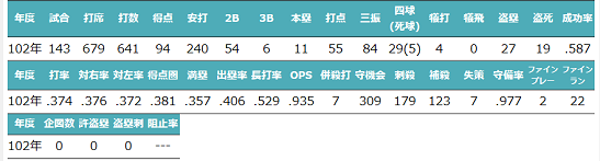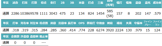 東京スカイクロウズ | 5 | 内野手 | 右投左打 | 振り子 | 87年度~106年度 | スカイクロウズ一筋の内野手。優れたミート力にパワーと走力、そして左投手も苦にしない好打者として活躍。100年度に初のB9と最多安打賞を獲得、以降も首位打者や最高出塁率賞のタイトルも獲得した。通算でも1111得点3043安打134HR202盗塁に打率も.318を記録した。 |