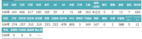 ライガーズ一筋の外野手。パワーを中心に走攻守の揃った外野手としてライガーズに貢献。GG賞を7回受賞、特に106年度はB9と同時受賞した。通算でも1256得点2663安打228HR231盗塁117FPを記録した。