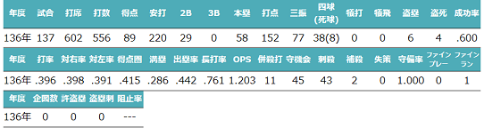 愛知ドルフィンズ(120-131)千葉スカイオーシャンズ(132-137) | 56 | 内野手 | 右投左打 | クラウチング | 120年度~137年度 | ドルフィンズとスカイオーシャンズでプレーした内野手。ミート、パワー、精神力を兼ね備えた超攻撃的選手としてスカイオーシャンズに移籍後DHの座で能力を存分に発揮した。134~136年度の3年間で3度のMVPに輝くなど打撃タイトルを多数獲得。特に136年度は220安打に打率.396と58HR152打点に得点圏打率.415とOPSは驚異の1.203を記録した。 |