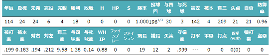 埼玉ライガーズ | 36 | 投手 | 右投右打 | オーバースロー | 101年度~118年度 | ライガーズ一筋の右腕。優れたコントロールと重い球、気迫を武器に活躍。111年度に最多勝と勝率第1位のタイトルを獲得すると114年度には18勝負けなしの防御率0.96と最高の活躍を見せ再び最多勝と勝率第1位賞を獲得した。通算でも101勝と防御率2.21を記録した。 |