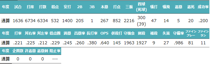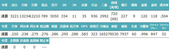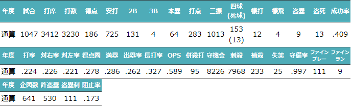 最多盗塁者賞5回/ゴールデングラブ賞12回 |