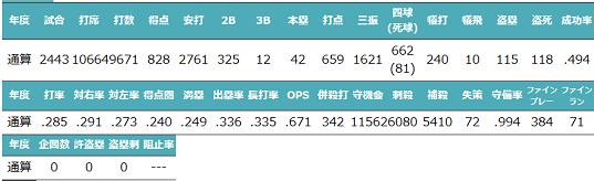 選手名 | 製作者名 | 選手画像 | 所属球団 | 背番号 | ポジション | 投打 | フォーム | 出場期間 | 選手紹介 |