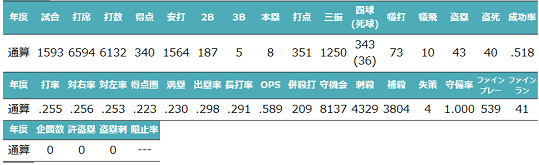 チーターズ一筋の内野手。製作者曰く「前世で結婚が間に合わなかった」と言う事で初期値は選手名を連想させるように決して高くはなかったが驚異的な守備力だけでなくミート力も兼ね備えた1流遊撃手に成長。9回のGG賞と2回のB9に輝いた。通算でも1564安打と539FPを記録した。