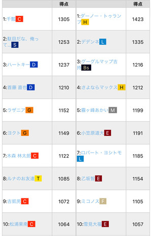 - 「得点ランキング(α版)」のアップロードファイル履歴