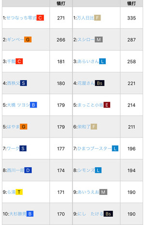 - 「犠打ランキング(α版)」のアップロードファイル履歴