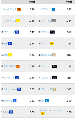 得点圏ランキング(α版)