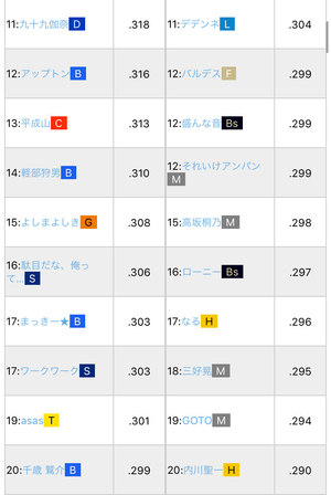 通算シートバッティングランキング(β版)