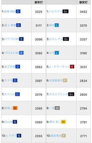 - 「被安打ランキング(α版)」のアップロードファイル履歴