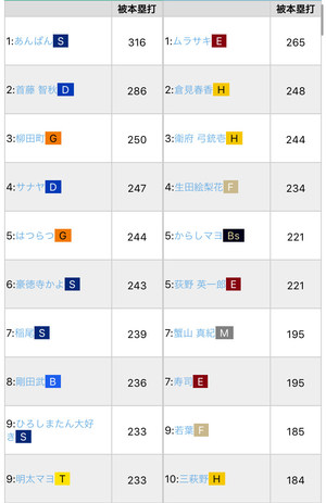 「被本塁打ランキング(α版)」のアップロードファイル履歴
