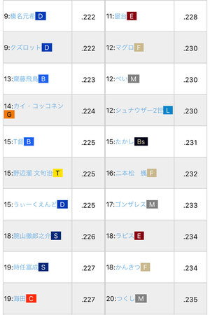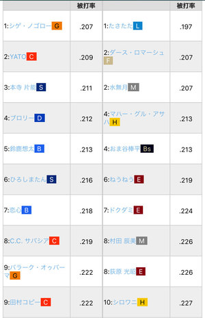- 「被打率ランキング(α版)」のアップロードファイル履歴