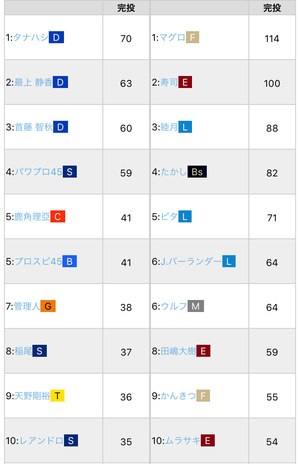 - 「完投ランキング(α版)」のアップロードファイル履歴