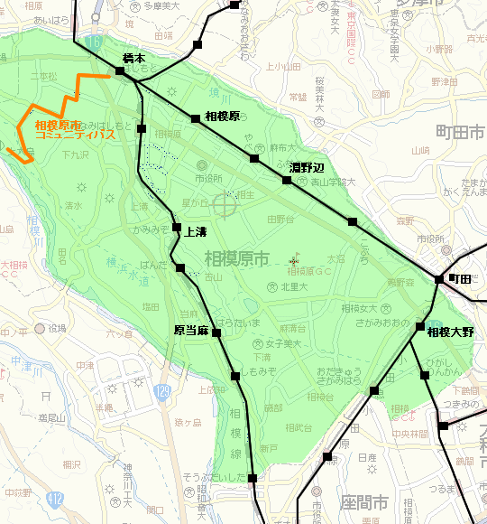 現在、橋本から九沢・大沢を経由し、相模川沿いの相模川自然の村までの区間で、コミュニティバスの実証実験を行っています(地図の大島・田名案に近いルート)。