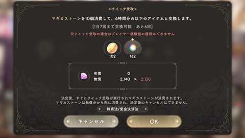 6時間分の報酬を、時間経過を待たずその場で受け取ることができます。初回のみマギカストーンの消費なしで受取可能ですので、毎日欠かさず受け取りましょう。
