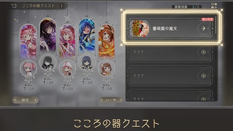 メインキオクに編成した魔法少女の「こころの器Lv.」経験値を獲得できるクエストです。QP消費がなく1日に挑戦できる回数が定められているため、毎日消化しておきましょう。