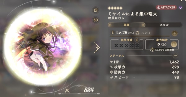 魔力解放 | ・HP/攻撃力/防御力が上昇 ・スキルレベルが上昇 ・キャラLv.アップで上限が解放 |