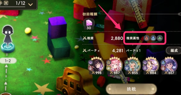 弱点属性を編成すると戦闘が有利になる