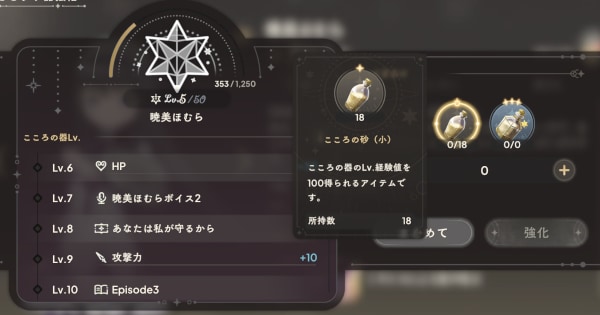 こころの器クエストをクリアすると、挑戦したパーティのこころの器レベルを上げる経験値を獲得できます。こころの器レベルが上がることで、ポートレイトやキャラのボイスが獲得できます。