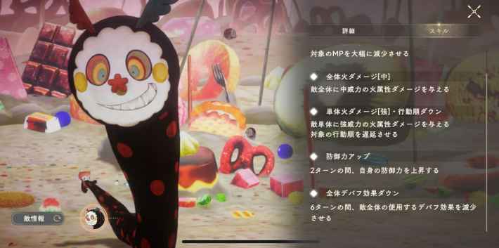 スコアアタックのお菓子の魔女は衰弱、気絶、裂傷に耐性持ち。加えて全体デバフ効果ダウンも行います。デバッファーを採用するのは難しいため、バッファーで火力を盛る戦い方をしましょう。