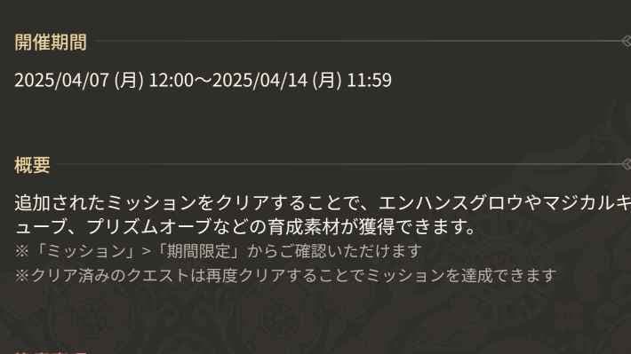 ミッション期間 | 4/7(月) ~ 4/14(月) 11:59 |