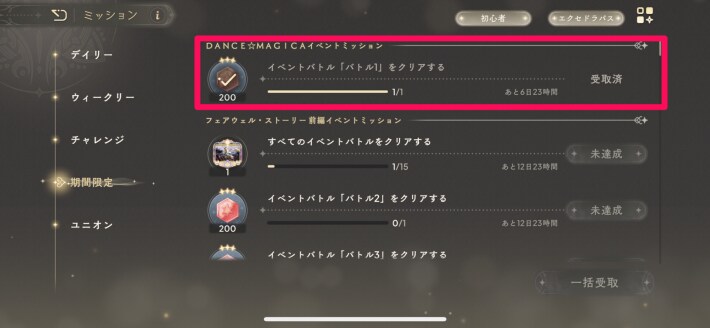 - 期間限定ミッション報酬を回収