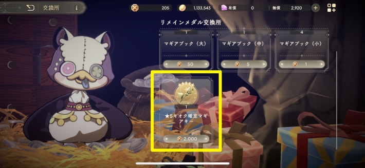 リメインメダル交換所でリメインメダル2000個と★5確定マギアキーを交換できます。リメインメダルは、限界突破MAXのキャラ獲得時や期間限定ガチャの終了時に所持しているキオクメダルが変換されることで手に入ります。