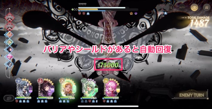 バリアやシールドはバフ扱いのため、バフ解除で消すことが出来ます。破壊に苦労する場合は、バフ解除要員を編成しましょう。