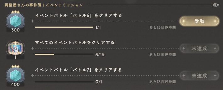 焦らずゆっくり未来へ | 【開催期間】 常設イベント 【主な報酬】 描いた理想はまだ遠く |