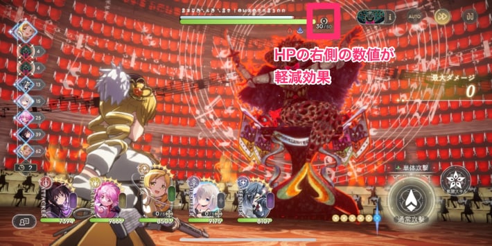 スコアアタックの人魚の魔女は、ストーリーのものと性質が大きく変化しています。ダメージを与えるほど敵の軽減効果が減少するため、手数の多いキャラを積極的に採用しましょう。