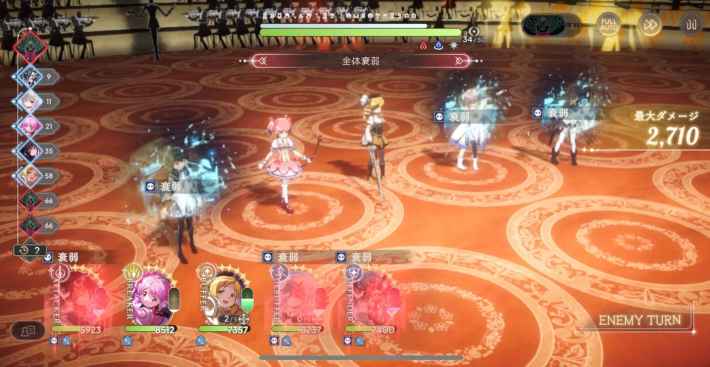 れん(ソウル・サルベーション)の追撃やマミ(ティロ・フィナーレ)の行動順上昇による手数で、人魚の魔女の軽減効果を減らしていきます。れんの追撃は裂傷依存なので、状態異常を切らさず入れていきましょう。
