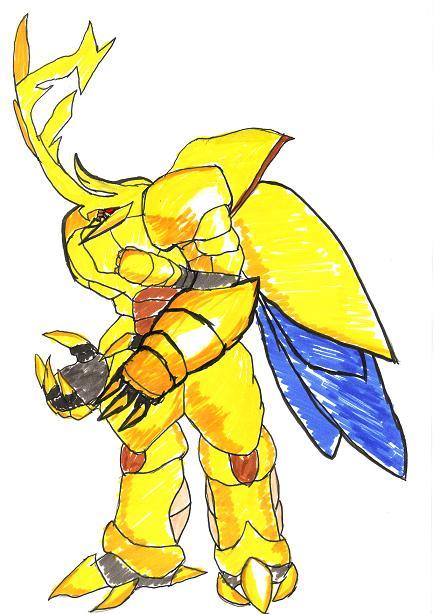 鈍い金色の甲殻をもち、甲虫のカブトムシを思わせる頭部が特徴。
