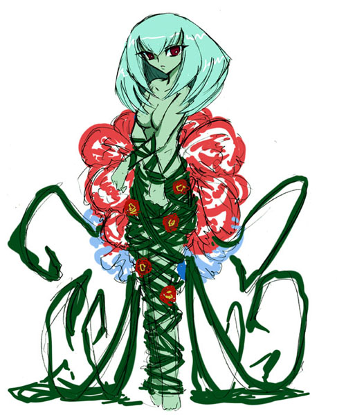 普段は巨大な花の中に籠もっているアルラグネの本体は、何故か人間の少女の姿を模しているが、元より