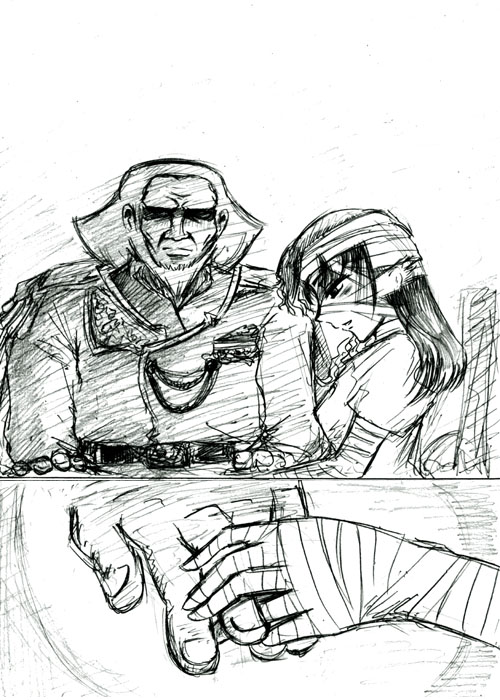 年老いて骨張った皇帝の指に、包帯を巻かれた指先が絡まった。