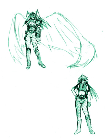 フェザーが無くても飛行できる、カードを用いて戦う等、他の空戦メードとは一線を画した戦闘スタイルを取る。