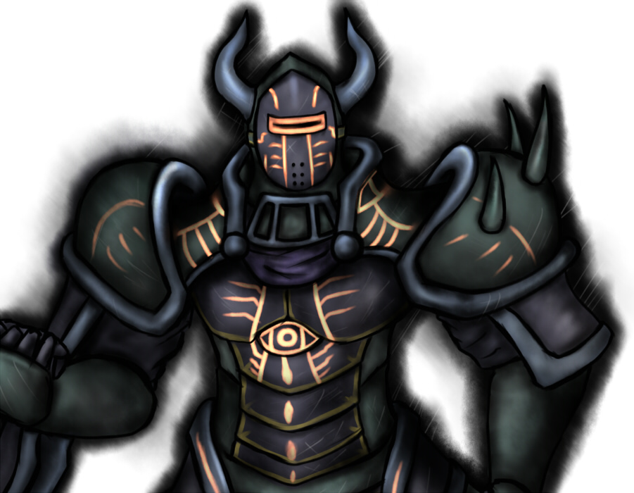 巨大な甲冑を身に纏い、とても人間では扱えない大斧を振り回し敵を薙ぎ払うスタイルを取る。