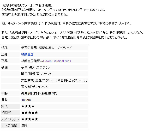 ころっころプロフィール変わるけど、しかも出身が楼蘭から島国に変わったけど、結局はただの戦闘狂じゃない。
