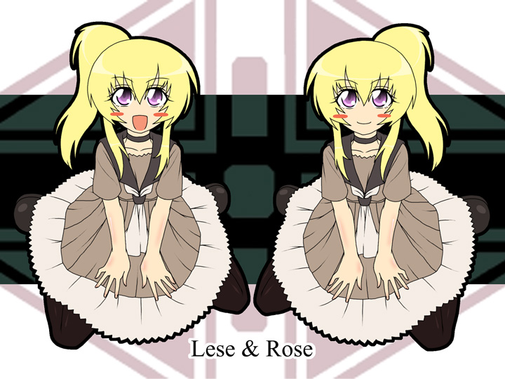 メードの中でも珍しい双子の姉妹。髪を右で束ねているのがローゼ(Rose)、左で束ねているのがレーゼ(Lese)ということになっているが、
