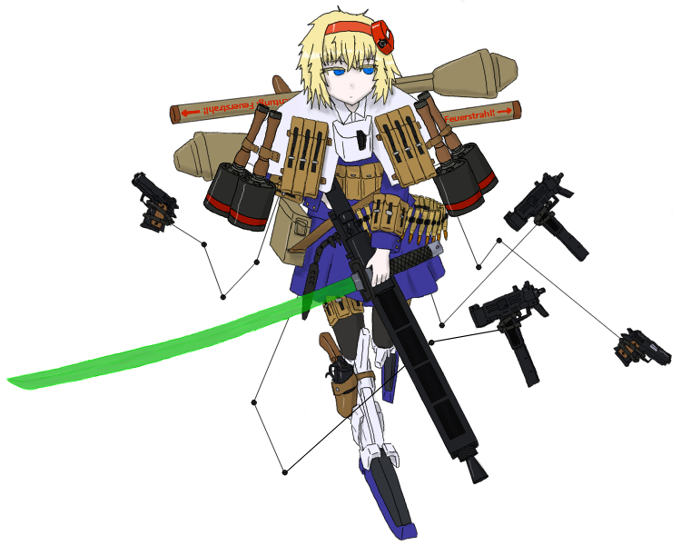 月門計画に基づいて製造されたMAIDの一つ。多数の火器を携行し、時として武器の見本市呼ばわりされる重装MAID。