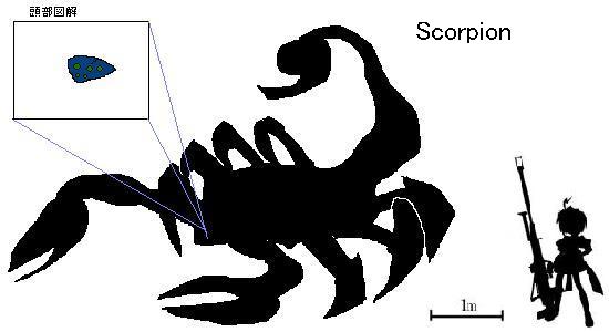 ワモンなどのGでも例外ではない。甲殻は硬いが腹部はやわらかい。おそらく、陸に上がったクラブが変化し、砂漠と言う環境に適応した形態だと考えられている。脚はハサミ含め8つ。尾には猛毒を含んだ針を持つ。毒は神経性で、刺された得物は動けなくなる。徐々に得物を蝕み、刺された箇所は壊死していく。メードでも数回刺されれば痺れが出て動けなくなる。主に砂漠などに生息しており、砂の中に巣を作る。ワモンなどには強いが、