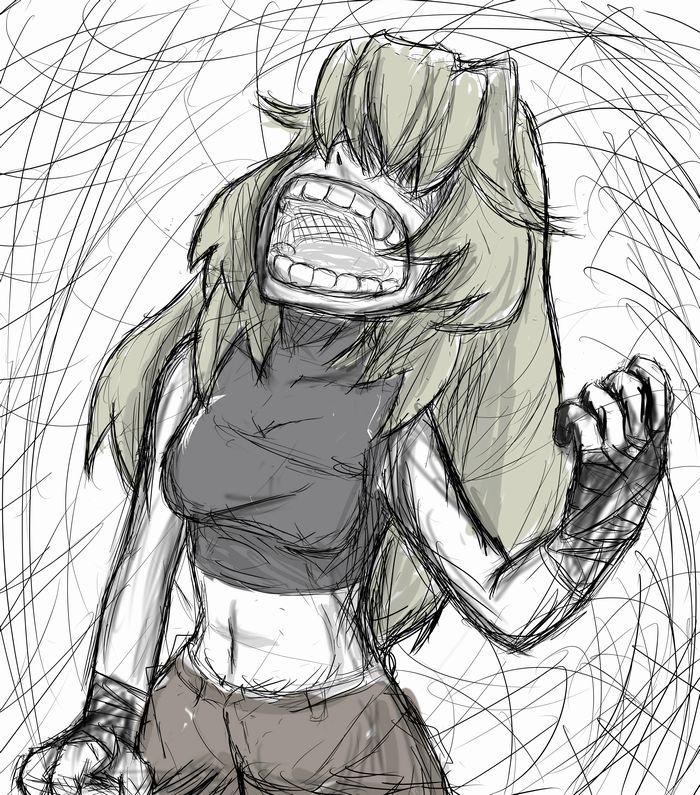 彼女の右手はとうに砕けていたが、それでも尚、打ち付けられ、拳からは骨が飛び出している。その骨を相手の顔面に突き立