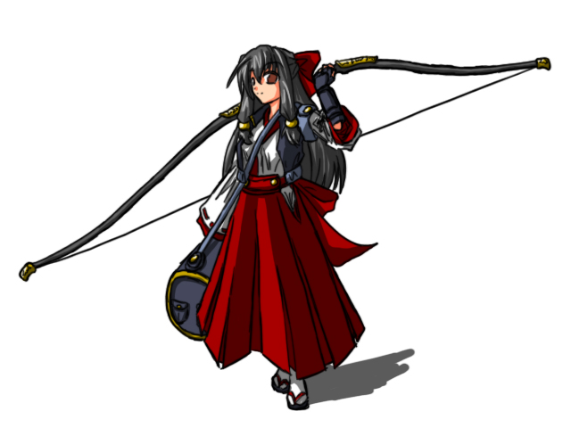 非常に張りの強い弦を使った和弓を装備し、通常はスナイパーライフルなどで行う超遠距離からの援護を主として行っている。