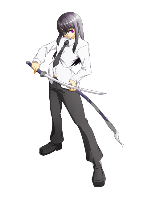 味方を庇った際に負傷した右目に黒い眼帯、左手首から先と左膝から下に義肢を装着している。